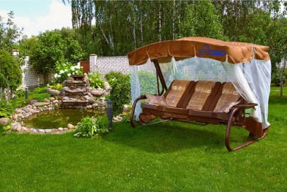 Тент: Тент ткань с водоотталкивающей отделкой 100% п/э плотность 141г/м2, с противомоскитной сеткой (полотно гардинное основовязаное 100% п/э плотность - фиксация сетки на тканевом тенте осуществляется с помощью горизонтальных и вертикальных застежек – «молний».