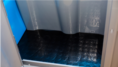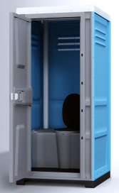 Стандартная комплектация: накопительный бак, сиденье с крышкой, пластиковый поддон, запирающее устройство с индикацией "Свободно-Занято", антивандальное крепление двери, вентиляционная труба, универсальные ушки для навесного замка, держатель для туалетной бумаги, крючок для одежды.