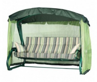 Модель комплектуется полиэфирным тентом с вшитой антимоскитной сеткой, защищающем от небольшого дождя и солнечных лучей (включая большую часть УФ-лучей).